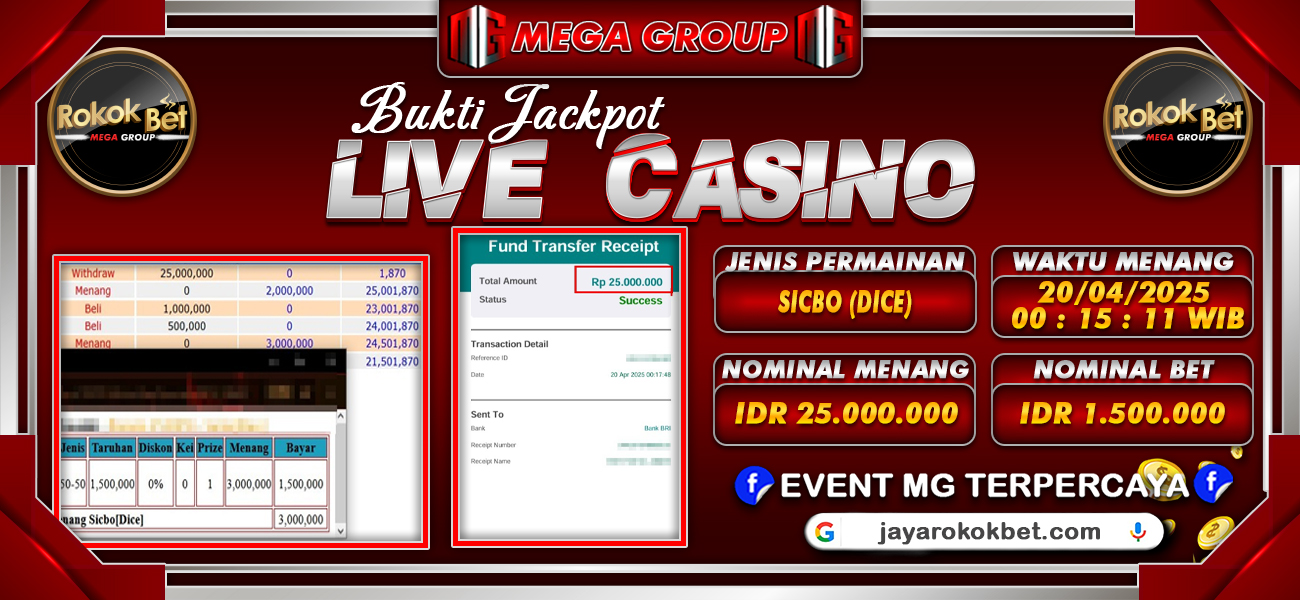 Jackpot Okewla, Game Live casino - MegaWheel, Rp 15,000,000 LUNAS